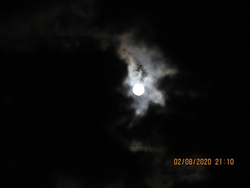 In the middle photo I see a wide eyed child, in a hooded coat lined in fur, looking up with eyes of wonder. Can you see it? It is very cloudy tonight so I snapped these photos between the parting of the clouds.